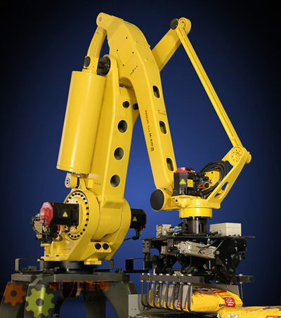 第三款參展的智能機器人,大型高速機器人FANUC ROBOT M-410iB,在紙箱、袋裝品等的碼垛堆放方麵具有獨特的優勢。從負載160KG的高速搬運型到負載700KG的超重物型,客戶可根據需求自由選擇。它同時也是一體化、緊湊型先進設計理念的最佳體現。控製部不再需要電纜連接,易於設置;采用中空手腕,無需考慮管線擺動的因素,大幅縮短程序調試時間,加快投產進度。搭載高性能控製器R-J3iC使它麵對各種作業環境都遊刃有餘。