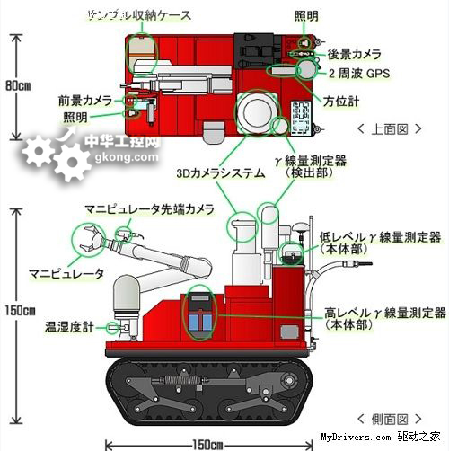 先期投入使用的紅色版機器人支持輻射探測、三維攝像、溫度濕度傳感等,另外還有一款黃色Monirobo機器人可以用於收集粉塵樣品和檢測可燃氣體。