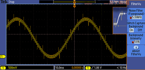 噪聲是幾乎所有電氣設計和調試工作中都存在的極具挑戰性的問題。MSO/DPO2000係列獨有的FilterVu可變低通濾波器提供了強大靈活的工具,使得用戶能夠更好地解決設計中的噪聲問題。FilterVu是(shi)唯(wei)一(yi)允(yun)許(xu)用(yong)戶(hu)從(cong)顯(xian)示(shi)的(de)信(xin)號(hao)中(zhong)濾(lv)掉(diao)不(bu)想(xiang)要(yao)的(de)噪(zao)聲(sheng),同(tong)時(shi)仍(reng)能(neng)用(yong)示(shi)波(bo)器(qi)的(de)全(quan)部(bu)帶(dai)寬(kuan)捕(bu)獲(huo)意(yi)想(xiang)不(bu)到(dao)的(de)毛(mao)刺(ci)的(de)可(ke)變(bian)低(di)通(tong)濾(lv)波(bo)器(qi)。通(tong)過(guo)顯(xian)示(shi)兩(liang)個(ge)波(bo)形(xing):一個可以濾掉的波形(前景波形),一個毛刺捕獲波形(背景波形)來實現。這一功能對電機、功率電子、通信類科研和開發項目的複雜調製信號分析大有裨益。