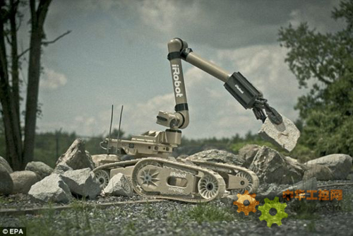 這支機器人小組中,也包括了美國方麵提供的iRobot 機器人,這是一種小型履帶式機器人,擁有一個機械臂,它可以協助日方人員一起執行廢墟清理以及放射性水平測量等危險任務。