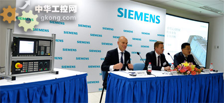 西門子(中國)有限公司驅動技術集團運動控製部總經理彭瑞澤(Franz-Peter Petz)、運動控製部副總經理、機床數控業務總經理許政順以及西門子股份公司驅動技術集團數控海外事業部總經理裴安谘(Achim Peltz)陪同來賓一起參觀了西門子展台。彭瑞澤先生表示:“西門子在為客戶提供數控技術及解決方案方麵擁有50多年的經驗。作為市場領導者,我們一直為客戶提供先進、創新的產品,並幫助客戶不斷提升數控機械的生產力。”