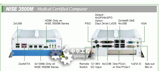 此外,NISE 3500無風扇計算機提供多種顯示I/O配置和豐富的I/O接口,包括2個 Intel® GbE Ethernet 接口, 5x COM 接口, 6x USB, 8x GPIO, 2x SATAII, 2x eSATA, 音頻接口. NISE 3500M無風扇計算機提供比NISE 3500無風扇計算機更多的功能,例如, 提供 3x IEEE1394b接口和 1x HDMI 接口。可選外置的CF槽模塊。在存儲方麵,RAID等級的 0和 1 都支持,充分體現 NISE 3500 係列無風扇計算機的高存儲性能。 NISE 3500 係列無風扇計算機也提供卓越的多種可選的擴展性能,包括1個 PCI, 1個 PCIe x1, 2個 PCI 和2個 PCIex1.