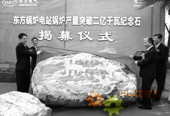 圖為東方電氣及東鍋有關領導為電站鍋爐產量突破2億千瓦紀念石揭幕。