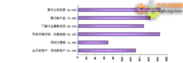2. 展商參加展會的主要收獲(多選): 開拓華南市場、公司形象的展示以及新產品/技術的發布是參展主動力