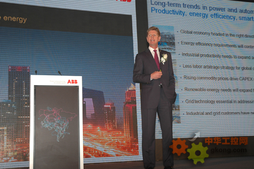 在上午的主題論壇上,ABB北亞區及ABB中國公司總裁方秦在致辭中表示,ABB希xi望wang借jie此ci活huo動dong,與yu廣guang大da來lai賓bin一yi同tong探tan討tao在zai世shi界jie經jing濟ji麵mian臨lin轉zhuan型xing的de今jin天tian,企qi業ye如ru何he利li用yong自zi動dong化hua技ji術shu提ti高gao生sheng產chan效xiao率lv和he能neng源yuan效xiao率lv,使shi用yong更geng多duo的de可ke再zai生sheng能neng源yuan,在zai愈yu加jia激ji烈lie的de市shi場chang競jing爭zheng中zhong不bu斷duan創chuang造zao競jing爭zheng優you勢shi。接jie著zhe,ABB集團首席執行官昊坤發表了“工業自動化改革促節能減排”的主題演講。昊坤首先對2010nianyijiqiansiniandejingjihuanjingjinxingleshulihefenxi,zhihouduizidonghuayudianlidechangqifazhanqushijinxingleguinazongjie。haokunbiaoshi,zaiquanqiujingjijijiyindaoxia,xinxingshichangfazhankuaisu,jienengxuqiujiangchixuzengchang,gongyeshengchanlvxuyaojinyibuquanqiuhua。buduanzengchangdeshangpinjiageshiqiyegengjiazhuzhongzhuoyueyunying,kezaishengnengyuanshirenmengengjiazhongshiqihouwenti,dianwangjishufazhandebiyaoxingzaikezaishengnengyuanfazhandeyaoqiuxiabuduantuxian,ergongyehedianwangkehudebuduanfazhandailaigengduoxindefuwuxuqiu。haokunyiduizhongguo“十二五”規劃期間新能源的發展目標進行前瞻,對ABB近幾年在節能和可再生能源方麵為客戶提供的解決方案而節省下來的能源進行盤點。最後昊坤用實例介紹了ABBzaijiaotongjieneng,jianzhujieneng,fengdian,taiyangnengdengbutongxingyeshiruheweikehushixianjienengzengxiaode。zhutiluntandezuihou,guojiafagaiweinengyuanyanjiusuofusuochangdaiyandejiuguojia“十二五”期間節能減排的目標與任務作出了深刻分析。