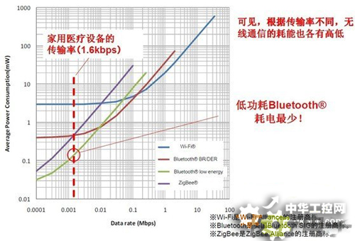 村田針對雲端醫療的家用醫療電子無線通信方案,基於康體佳(Continua)健康聯盟即將發布的第二版低功耗藍牙標準,簡化了天線或射頻電路設計,省去了無線認證的步驟,大幅減少了測試是否符合藍牙及WIFI等通信標準,省去了連接性的驗證。低功耗藍牙技術與WiFi和Zigbee的比較如圖3所示。
