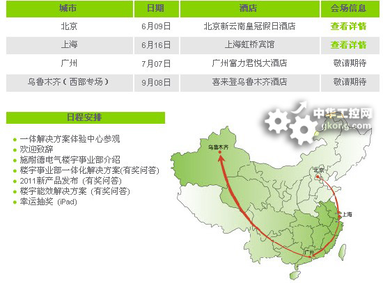 對於當今社會客戶對建築家居安防節能等方麵的需求日益增長,作為全球能效管理專家施耐德電氣,以實際行動為業界客戶提供更智能、更舒適、更高效和更安全的係統解決方案,因此,“2011施耐德電氣樓宇事業部全國巡展”即將於6月9日啟動,他將與您分享樓宇控製係統,視頻監控係統,能源管理係統等諸多一體化的解決方案,同時還將全麵呈現派爾高以IP 技術為代表的安防解決方案及其與樓宇自動化係統的集成方案。