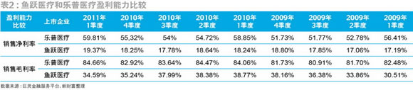 表2:魚躍醫療和樂普醫療盈利能力比較