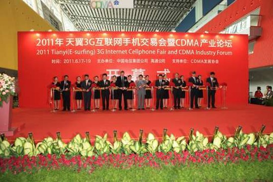 2011年6月17日,2011年天翼3G互聯網手機交易會在廣州琶洲會展中心盛大召開。本次交易會為期三天,交易會期間還召開了“2011年CDMA世界論壇”、“全球CDMA運營與發展論壇”和“中國電信CDMA產業鏈高峰論壇”。本次交易會和係列高峰論壇的召開旨在促進CDMA產業鏈各方資源的整合和信息共享,構建更加開放、充滿活力的CDMA產業鏈,營造健康有序、和諧活躍的發展環境,促進CDMA產業鏈的發展壯大和全麵繁榮。