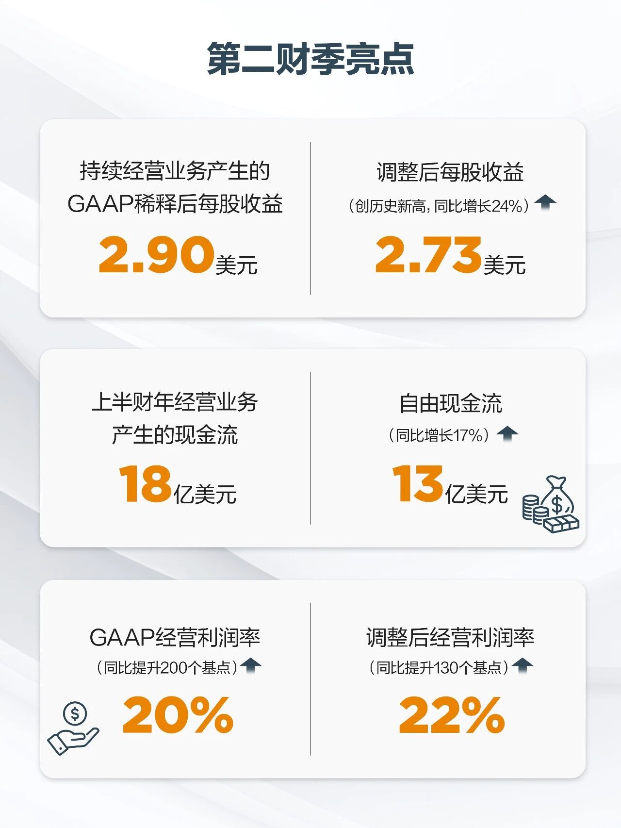 “展望第三季度,各業務訂單額將延續增長勢頭,預計將推動銷售額實現兩位數增長,達到50億yi美mei元yuan,並bing通tong過guo強qiang勁jin經jing營ying業ye績ji帶dai動dong每mei股gu收shou益yi同tong樣yang取qu得de兩liang位wei數shu增zeng長chang。我wo們men將jiang持chi續xu投tou資zi於yu創chuang新xin產chan品pin與yu技ji術shu,以yi服fu務wu全quan球qiu客ke戶hu,為wei未wei來lai增zeng長chang積ji蓄xu動dong力li。”