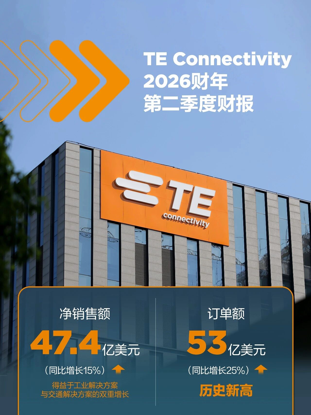 4月23日TE Connectivity發布了截至2026年3月27日的2026財年第二季度財報。