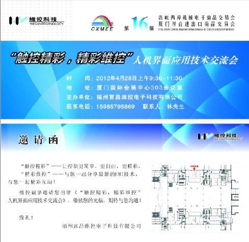 維控誠摯邀請您出席《“觸控精彩,精彩維控”人機界麵應用技術交流會》,敬候您的光臨,期待與您溝通!