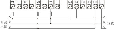 2-3、三相四線係統,采用無PT,3CT方式的接線圖(適用於3P4L)
