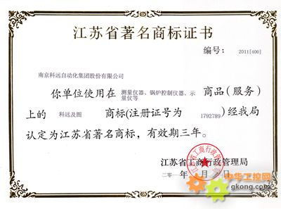 近日,科遠股份研發生產的“科遠”係列產品,榮獲由江蘇省工商行政管理局頒發的“江蘇省著名商標”稱號。省著名商標的認定,使“科遠”商標得到了進一步的保護,這對於科遠股份參與國內、國際市場競爭,用品牌推動企業發展,加速完成產品競爭向品牌競爭的轉型都將起到巨大的促進作用。