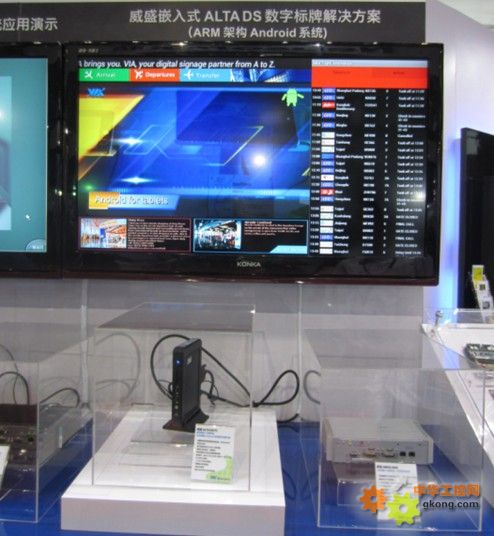 上圖,是威盛嵌入式開發的一套數字標牌解決方案,能基於一個ARM單核處理器平台和Android安卓操作係統,同時實現兩組應用需求,一個滿足某特定行業的交互控製(如右側,可以是機場提供實時航班信息交互式查詢,也可以是觸摸屏電梯按鈕控製樓層變化應用),同時再實現另一個交互式數字標牌信息發布應用(如左側,可同時支持走馬燈、文字、高清圖片、高清視頻、動態網頁發布和點擊交互)。該方案能出色的呈現HTML5動態網頁各種功能效果,最大化滿足當今人機應用的多媒體互動新需求!