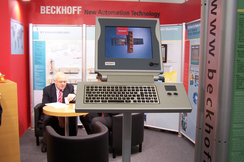 德國倍福在此次展會上首次展示了其全套的塑料機械解決方案:用於吹塑機、注塑機、擠出機的整套“交鑰匙”解決方案。尤其是吹塑機自動化解決方案,Beckhoff 基於PC的控製係統取代了傳統的硬PLC和專用控製器硬件。操作人員可直觀地操作壁厚控製器。這項創新技術贏得業內專業人士的高度讚賞。