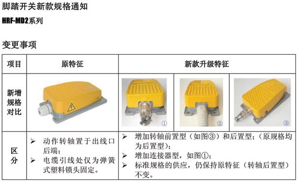 腳踏開關技術規格更新通知