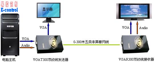 VGAR/T300Ë«½ÊÏßVGA´«ÊäÆ÷£¬¿É´«ÊäVGAÐźÅ0--300Ã×£¬Ëü×¨ÎªÍøÂçÆ½°åÏÔʾ¼°´óÆÁĻĻǽÏÔʾ¹ã¸æ¹¤³Ì¡¢¹¤Òµ×Ô¶¯»¯¿ØÖÆ¡¢Ò½ÁÆÉ豸¡¢°²·À¼à¿Ø¡¢¶àýÌå½ÌѧµÈÏÔʾϵͳ¹¤³ÌÖиßÖÊÁ¿ÊÓÆµÐźų¤¾àÀë´«ÊäµÄÐèÇó¶ø×¨ÒµÉè¼ÆµÄ¼¯VGAÐźÅת»»¡¢·ÖÅä¡¢Çý¶¯¡¢½ÓÊպͻ¹Ô¹¦ÄÜΪһÉíµÄÐźŴ«Êäϵͳ¡£Ëü¿ÉÒÔ½«VGAÐźÅͨ¹ý·ÇÆÁ±ÎÎåÀàÍøÏßÉÏÆ½ºâ´«Ê䣬ÒÔÔöÇ¿¶Ô¹²Ä£ÔëÉù¼°¸ÉÈÅÐźŵÄÒÖÖÆ£¬Í¬Ê±´ó·ù¶ÈµØ½ÚÔ¼Ï߲ijɱ¾²¢¼ò»¯Á˹¤³Ì²¼Ïß¡£²ÉÓÃרÀû¼¼Êõ½«HºÍVÐźűàÂëÖÁRGBÐźÅÉϼÓÖØ´¦Àíºó·¢ËÍ£¬½öÀûÓÃCAT-5µçÀµÄÈý¶ÔË«½ÊÏßÍê³ÉVGA¡¢SVGA¡¢SXGA¡¢XGA¡¢SXGAµÄRGBHVÐÅºÅµÄÆ½ºâ±à½âÂ룬²¢²ÉÓÃÔ¶¾àÀë¸ßƵ²¹³¥¼ÓÖØ´¦Àí£¬´ø¿í¸ß´ï350MHz¡£½ÓÊն˲ÉÓÃÒµ½ç¶ÀÓÐµÄÆ½ºâÊäÈëÐźŻº³å¡¢µØµçλ¸ôÀë¡¢¿É±äÔöÒæ·Å´ó¡¢Æ½ºâ/·Çƽºâת»»¡¢Îå¶Î¼«µã¼ÓȨ¾ùºâ²¹³¥¡¢¹²Ä£ÐźŻָ´¡¢Êä³öÔöÒæµ÷½Ú¡¢Í¬ÆµÐźŽâÂë¡¢¸ß±£ÕæÊÓÆµ·ÖÅäµÈ¶à¼¶¹ã²¥¼¶ÊÓÆµÐźŴ¦Àí¼¼Êõ£¬Í¬Ê±»¹¾ßÓÐÁ¬ÐøµÄÁÁ¶ÈºÍ¶Ô±È¶È¿ØÖÆ£¬´«Êä¾àÀë´ïµ½300Ã×(1920*1024/60Hz)£¬ÒÔÂú×ã´óÐ͹¤³ÌͶӰ»ú¡¢ÏÔʾÆ÷¡¢TFT-LCD TV¡¢PDPÐźŴ«ÊäµÄÐèÒª¡£ÓÉÓÚÕû¸ö´«Êäϵͳ²ÉÓÃÁ˼ÓȨÁãÖµ²ð·ÖµÄƽºâ´«ÊäµÄרÀû¼¼Êõ£¬Òò´ËË«½ÊÏßÔÚ´«ÊäÐźÅʱ²»»á¶ÔÍâÔì³ÉEMIµÄ¸ÉÈÅ£¬´ËÍ⣬¶à³öµÄÒ»¶ÔË«½ÊÏß¿ÉÒÔ´«ÊäÒôƵÐźš£
