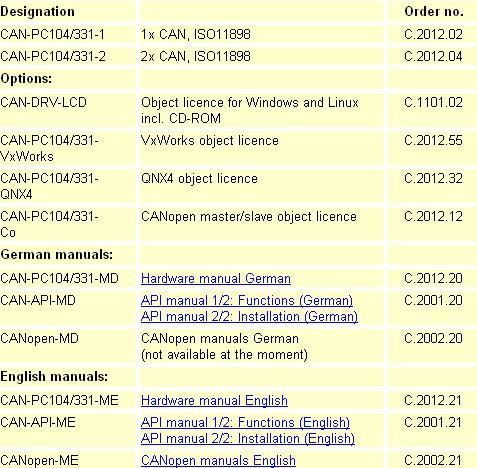 PC104\PC104+½Ó¿ÚµÄCANͨѶ¿¨,º¬1ÖÁ4¸öCAN¿Ú,Ö§³ÖCANopenºÍDEVICENETÐÒé,ÖÇÄÜ¿¨ºÍ·ÇÖÇÄÜ¿¨,Ìṩ·á¸»µÄº¯Êý¿âºÍÈí¼þ