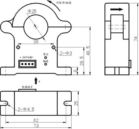 Áù¡¢KY3ϵÁЦµ25mm¿×¼ÐǯÐ͵çÁ÷±äËÍÆ÷ÍâÐγߴçͼ