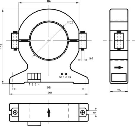 Áù¡¢KY1ϵÁЦµ52mm¿×¼ÐǯÐ͵çÁ÷±äËÍÆ÷ÍâÐγߴçͼ