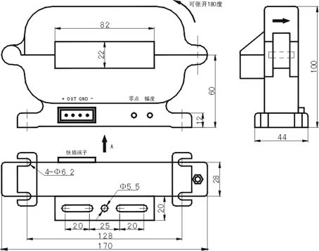 Áù¡¢KF3ϵÁоØÐÎ82mm¡Á22mm¿×¼ÐǯÐ͵çÁ÷±äËÍÆ÷ÍâÐγߴçͼ