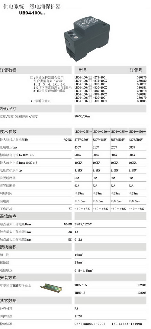 UB04/100 ¹©µçϵͳһ¼¶µçÓ¿±£»¤Æ÷