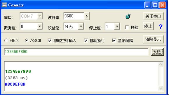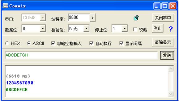 ÏÖÔھͿÉÒÔÓÃͨÓõĴ®¿ÚͨÐųÌÐòÀ´½øÐÐͨÐÅÁË¡£ÎÒÃÇÓõÄÊÇCOMMIX£¬Èçͼ11¡¢Í¼12¡£Ñ¡Ôñ´®¿ÚºÅ£¬¡°´ò¿ª´®¿Ú"£¬ÌîдҪ·¢Ë͵ÄÊý¾Ý¡£°´¡°·¢ËÍ"£¬³É¹¦ÁË£¡