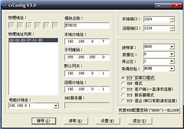ÔËÐв¨Ê¿²úÆ·¹âÅÌÉϵÄCRConfigv30.exe¡£°´¡°ËÑѰ"£¬³öÏÖÁ˲¨Ê¿ÒÔÌ«Íø/´®¿Úת»»Æ÷£¬Èçͼ2¡£Ð޸ġ°±¾µØIPµØÖ·"£¬±ÈÈç192.168.0.9£¬ÒÔÃâÓëÁíÍâÒ»¸ö²¨Ê¿ÒÔÌ«Íø/´®¿Úת»»Æ÷IPµØÖ·³åÍ»¡£(Èçͼ3)