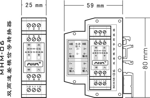 ×¢£º Ë«¸ßËÙ²îÄ£ÐźÅת»»Æ÷ÊäÈë¶ËÓëÊä³ö¶Ë²»ÄÜ½Ó´í¡£ MHM-06ÐÍÄÚΪ¶þ·¶ÀÁ¢²îÄ£ÐźÅת»»Æ÷£¬ÊäÈë¡¢Êä³ö¶ËÉÏÏÂÒ»Ò»¶ÔÓ¦£¬Ï໥¶ÀÁ¢²»Äܽ»²æÊ¹Óá£