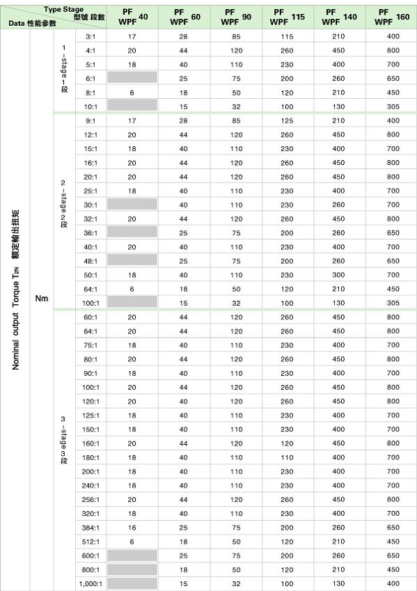 PF/WPF precision planetary gear boxes technical data PF/WPF ϵÁо«ÃÜÐÐÐǼõËÙ»ú¼¼Êõ²ÎÊý |