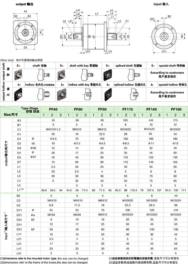 PF-OP1 shaft input mounting dimensions PF-OP1ÊäÈëÖáÐÍÍâÐΰ²×°³ß´ç |