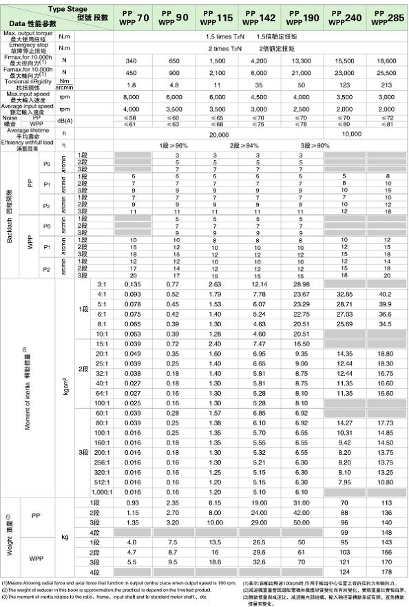 PP/WPP precision planetary gear boxes technical data PP/WPP ϵÁо«ÃÜÐÐÐǼõËÙ»ú¼¼Êõ²ÎÊý |