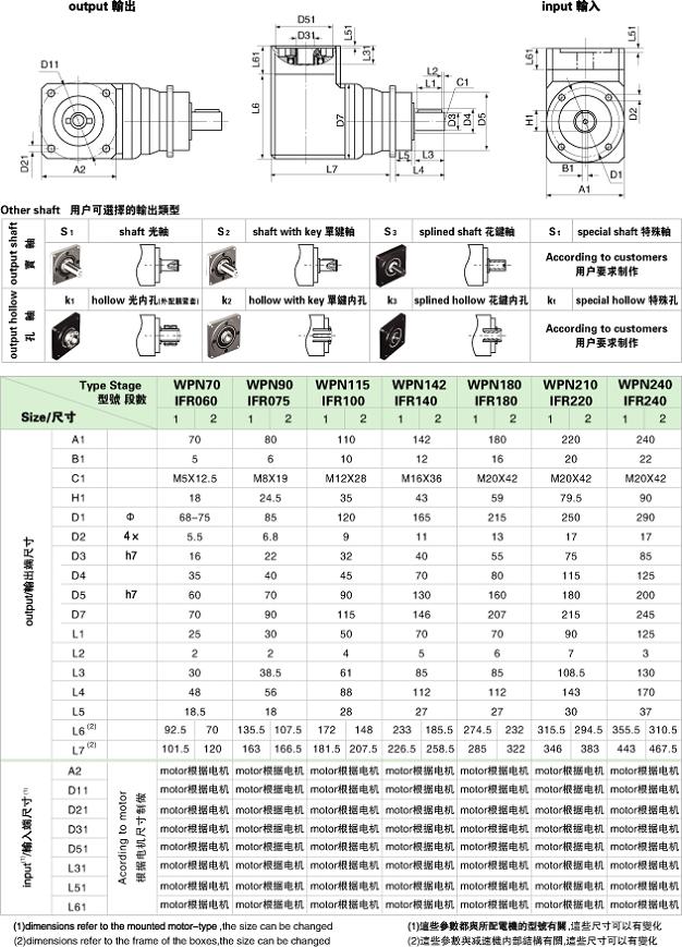 WPN/IFR motor mounting dimensions WPN/IFRµç»úÊäÈëÐÍʽÍâÐΰ²×°³ß´ç |