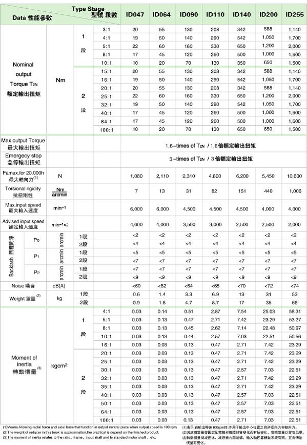 ID precision planetary gear boxes technical data ID ϵÁо«ÃÜÐÐÐǼõËÙ»ú¼¼Êõ²ÎÊý |