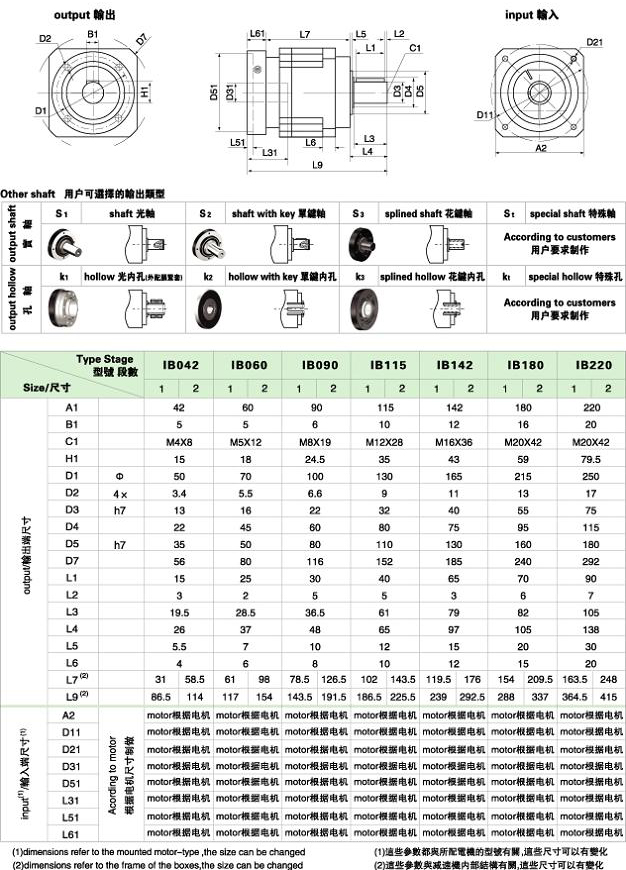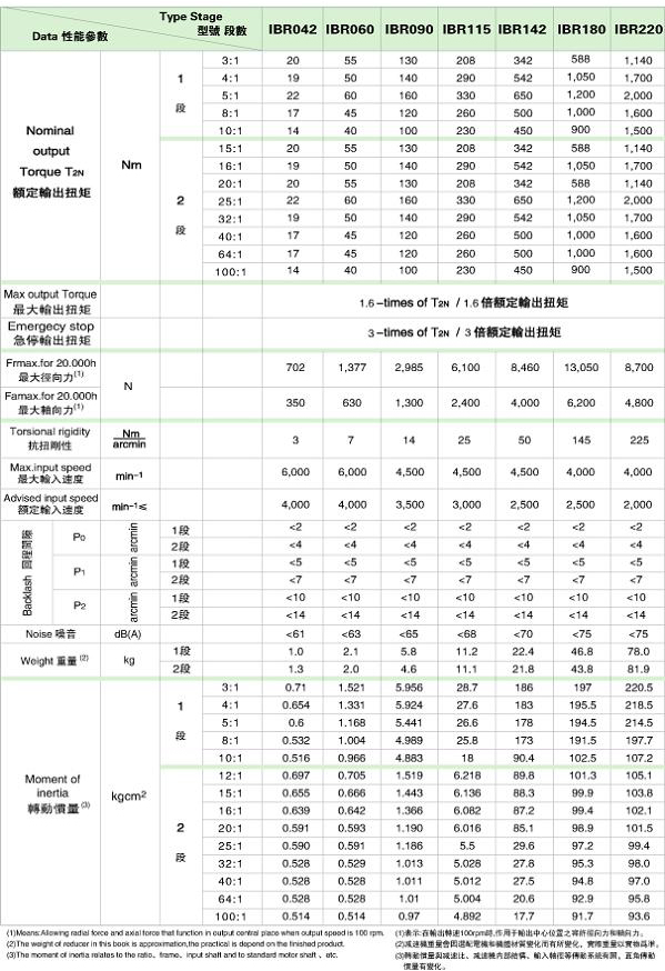 IBR precision planetary gear boxes technical data IBR ϵÁо«ÃÜÐÐÐǼõËÙ»ú¼¼Êõ²ÎÊý |