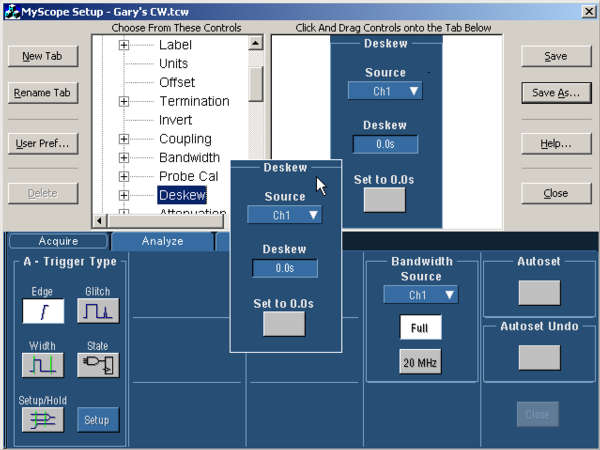 TDS5000B ϵÁÐÌṩÁËÌ©¿Ë¶ÀÓеÄMyScopeÓû§×Ô¶¨Òåʾ²¨Æ÷Óû§½çÃæ¡£MyScope¿ØÖÆ´°¿ÚÊÇÒ»¸öÇ¿´óµÄ¹¤¾ß£¬Í¨¹ýËü£¬Äú¿ÉÒÔʹÓù¤×÷ÖйØÐĵÄÖØÒª¹¦ÄܺͿؼþÀ´½¨Á¢×Ô¼ºµÄ²Ù×÷´°¿Ú¡£Ö»ÓÐÌ©¿Ëʾ²¨Æ÷ÌṩÕâÑùµÄ¹¦ÄÜ£¬Äú½«ÄÜ´ÓÒÇÆ÷µÄ¸÷¸ö²¿·Ö°ÑÄúÐèÒªµÄËùÓй¦Äܼ¯ÓÚÒ»¸ö¿ØÖÆ´°¿ÚÄÚʹÓ㬴ӶøÓÐЧµØ´´½¨³öÄú×Ô¼º¸öÐÔ»¯µÄʾ²¨Æ÷¹¦ÄÜ¡°¹¤¾ßÏ䡱¡£´Ó½ñÒÔºó£¬ÄúÔÙÒ²²»»áÏñÒÔǰÄÇÑù·Ç´Ó²Ëµ¥ËÑË÷¹¦Äܲ»¿É£»Ã¿´ÎÍâ³ö»òÐݼٻص½ÊµÑéÊÒºó£¬Ò²ÔÙÓò»×ÅÖØÐÂѧϰÈçºÎʹÓÃʾ²¨Æ÷¡£MyScope¿ØÖÆ´°¿ÚµÄ±¦¹óÖ®´¦ÔÚÓÚ£¬Ëü¿ÉʹÄú¾¡°Ñ±¦¹óµÄʱ¼ä¼¯ÖÐÔÚÊÖÍ·µÄÈÎÎñÉÏ£¬¶ø²»ÊÇ·ÅÔÚä¯ÀÀʾ²¨Æ÷²Ëµ¥ÉÏ¡£¶øÇÒ£¬ÕâЩ×Ô¶¨Òå¿ØÖÆ´°¿ÚµÄ´´½¨¹ý³Ì²¢²»¸´ÔÓ£¬Ö»Ð輸²½¼òµ¥Ö±¹ÛµÄÍϷŲ½Öè±ã¿ÉÔÚÊý·ÖÖÓÄÚÍê³É¡£´´½¨ºÃ¸öÐÔ»¯µÄ¿ØÖÆ´°¿Úºó£¬Äú±ã¿Éͨ¹ýʾ²¨Æ÷°´Å¥/ ²Ëµ¥À¸ÉϵÄרÓÃMyScope °´Å¥ºÍ²Ëµ¥Ñ¡ÏîʹÓÿØÖÆ´°¿Ú£¬Æä¼ò±ã³ÌÐò¾ÍÏóÈÎºÎÆäËü¿ØÖÆ´°¿ÚÒ»Ñù¡£×Ô¶¨Òå¿ØÖÆ´°¿ÚÔÚÊýÁ¿ÉÏûÓÐÏÞÖÆ£¬¹Ê¿É´´½¨Ðí¶à´°¿Ú£¬ÔÚ¹²Ïí»·¾³ÏÂʹÿһ¸öʾ²¨Æ÷ʹÓÃÕß¶¼ÓÐ×Ô¼º¶ÀÌØµÄ¿ØÖÆ´°¿Ú¡£ÓÉÓÚ¿ØÖÆ´°¿ÚÊÇÒÔÎļþÐÎʽ´¢´æÔÚÓ²ÅÌÉÏ£¬Òò¶ø¿ÉÇá¶øÒ׾ٵؽ«Æä´«Ë͵½ÆäËüTDS5000BϵÁÐʾ²¨Æ÷ÉÏʹÓ㬻òÕßÉõÖÁ¿ÉÔÚÐèҪʱͨ¹ýµç×ÓÓʼþ·¢¸øÔ¶ÔÚ´óÑó±Ë°¶µÄͬÊ¡£MyScope¿ØÖÆ´°¿Ú£¬¿ÉʹËùÓÐʾ²¨Æ÷ʹÓÃÕß»ñÒæ£¬´Ó´ËÃâ³ýÁËÐí¶àÓû§ÒÔǰËùÃæÁÙµÄÒòÒ»¶Îʱ¼ä²»ÓÃÒÇÆ÷¶øÔڻص½ÊµÑéÊÒºóÐèÎÂϰÓ÷¨µÄÀ§¾³£¬¶øÄÇЩÌìÌìʹÓÃʾ²¨Æ÷µÄÒµÎñ¸ßÊÖÃÇ£¬Ôò¿Éͨ¹ý¿ØÖÆ´°¿Ú½øÒ»²½Ìá¸ß¹¤×÷ЧÂÊ¡£Äú¿É½«ËùÓÐÐèÒªµÄ¹¦Äܶ¼·ÅÔÚÒ»¸ö¿ØÖÆ´°¿ÚÄÚ£¬ÔÚÖØ¸´ÀàËÆÈÎÎñʱÎÞÐëÒ»Ò»ä¯ÀÀ²ã²ã²Ëµ¥