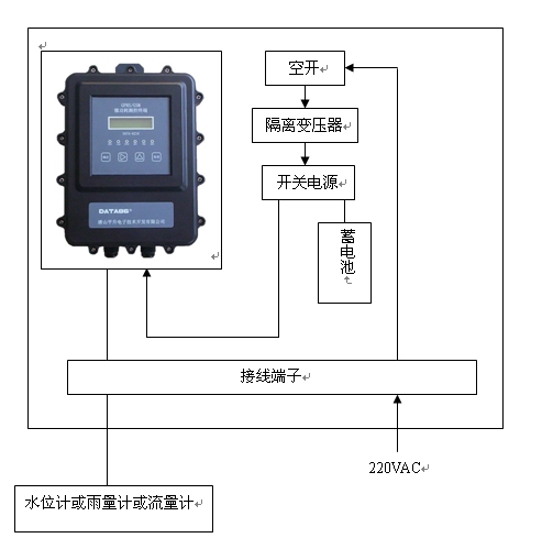 ¡ôÖÕ¶ËÄÚÅäÖÃÐîµç³Ø£¬ÏÖ³¡Í£µçºó£¬ÖÕ¶ËÉ豸ºÍˮλ¼Æ¡¢ÓêÁ¿¼Æ¡¢Á÷Á¿¼ÆµÈ²âÁ¿É豸¿ÉÒÔ¼ÌÐø¹¤×÷Ò»¶Îʱ¼ä¡£