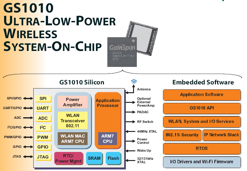 ¡¡¡¡µÚ1´Î½«Ó¦ÓÃMCU¡¢Wi-FiÎÞÏßÍøÂç¿ØÖÆMCUÓëWi-FiÉ䯵RFǰ¶Ë¼¯³ÉÔÚÒ»¿éоƬÉÏ----Wi-FiÎÞÏßSOC£ºGS1010¡£