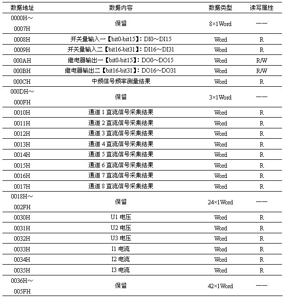 61550; ¡¡½»Á÷µçÁ÷¡¢µçѹÓÐЧֵ²âÁ¿½á¹û£¨Êý¾ÝµØÖ·0030H¡«0035H£©¡£¸Ã¼Ä´æÆ÷Êý¾ÝΪʮÁùλÎÞ·ûºÅÕûÐÍ£¬µçѹ·Ö±æÂÊΪ0.1Hz£¬Í¨Ñ¶¶ÁÈ¡Êý¾Ý½á¹û³ýÒÔ10¼´¿É£¬µçÁ÷·Ö±æÂÊΪ0.001A£¬Í¨Ñ¶¶ÁÈ¡Êý¾Ý½á¹û³ýÒÔ1000¼´¿É¡£