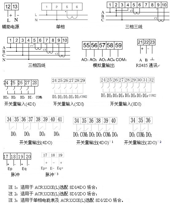 ¡¡¡¡2¡¢ACR200¡¢ACR200E¡¢ACR210E(L)¡¢ACR220E(L)ÔÚÑ¡ÅäK(4DI)¹¦ÄÜʱ¾ß±¸1·Ó馵çÄÜÂö³åÐźÅÊä³ö¶Ë¿Ú£¬ÔÚÑ¡ÅäK(2DI/2DO¡¢4DI/2DO)¹¦ÄÜʱÎÞÂö³åÐźÅÊä³ö¶Ë¿Ú£»