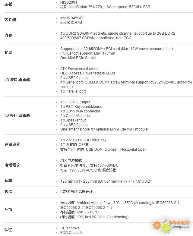 Intel® Atom8482; N270 1.6GHz ÎÞ·çÉȹ¤Òµ¼ÆËã»ú,1x PCI À©Õ¹²Û(fanless pc)
