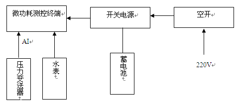 ¡ô ÖÕ¶ËÉ豸°²×°·½Ê½ ½«Î¢¹¦ºÄ²â¿ØÖÕ¶Ë¡¢³äµç±£»¤Æ÷¡¢Ðîµç³ØµÈ¼¯³ÉÔÚ½ðÊô·À»¤ÏäÄÚ¡£½ðÊô·À»¤Ïä°²×°ÔÚ½ðÊô¸ËÉÏ¡£Ì«ÑôÄܰ尲װÔÚ½ðÊô¸ËÉϵÄÖ§¼ÜÉÏ¡£Ñ¹Á¦±äËÍÆ÷ÐźÅÏß¡¢Ë®±íÐźÅÏß½ÓÔÚ·ÀË®½ÓÏߺÐÉÏ¡£°´½ÓÏßͼҪÇó½ÓÏß¡£