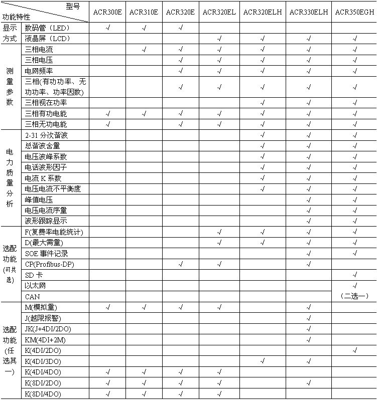 ¡¡¡¡3¡¢ACR300E¡¢ACR310E¡¢ACR320E(L)×î¶à¿É´ø4·ģÄâÁ¿Êä³ö£»