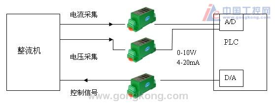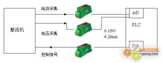 ²É¼¯ÕûÁ÷»úµÄµçÁ÷µçѹÐźţ¬²¢½øÐиôÀë´«Ë͵½PLCµÄA/DÄ£¿é£¬PLCÔÙͨ¹ýD/AÄ£¿éת»¯³É¿ØÖÆÐźţ¬À´¿ØÖÆÕûÁ÷»ú¸÷ÖÖÔËÐÐ״̬