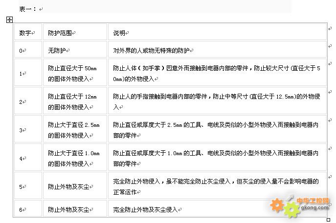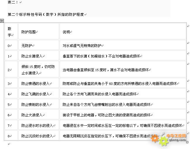 Á½¸ö±êʾÊý×ÖËù±íʾµÄ·À»¤µÈ¼¶Èç±íÒ»¼°±í¶þËùʾ£º