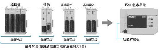 ¡¾Ç¿´óµÄÀ©Õ¹ÐÔ¡¿ ¡ôÔöÇ¿ÁËͨÐŵŦÄÜ£¬ÆäÄÚÖõıà³Ì¿Ú¿ÉÒÔ´ïµ½115.2kbpsµÄ¸ßËÙͨÐÅ£¬×î¶à¿ÉÒÔͬʱʹÓÃ3¸öͨÐſڣ¨°üÀ¨±à³Ì¿Ú£© ¡ôÐÂÔöÁ˸ßËÙÊäÈëÊä³öÊÊÅäÆ÷£¬Ä£ÄâÁ¿ÊäÈëÊä³öÊÊÅäÆ÷ºÍζÈÊäÈëÊÊÅäÆ÷£¬ÕâЩÊÊÅäÆ÷²»Õ¼ÓÃϵͳµãÊý£¬Ê¹Ó÷½±ã¡£ ¡ôÔÚFX3UµÄ×ó²à×î¶à¿ÉÒÔÁ¬½Ó10Ì¨ÌØÊâÊÊÅäÆ÷¡£