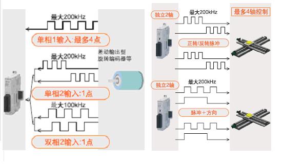 ¡ôͨ¹ýʹÓøßËÙÊäÈëÊÊÅäÆ÷¿ÉÒÔʵÏÖ×î¶à8·¡¢×î¸ß200kHzµÄ¸ßËÙ¼ÆÊý¡£ ¡ôͨ¹ýʹÓøßËÙÊä³öÊÊÅäÆ÷¿ÉÒÔʵÏÖ×î¶à4Öá¡¢ ×î¸ß200kHzµÄ¶¨Î»¿ØÖÆ¡£ ¡ô¼ÌµçÆ÷Êä³öÐ͵Ļù±¾µ¥ÔªÉÏÒ²¿ÉÒÔͨ¹ýÁ¬½Ó¸ÃÊÊÅäÆ÷½øÐж¨Î»¿ØÖÆ¡£