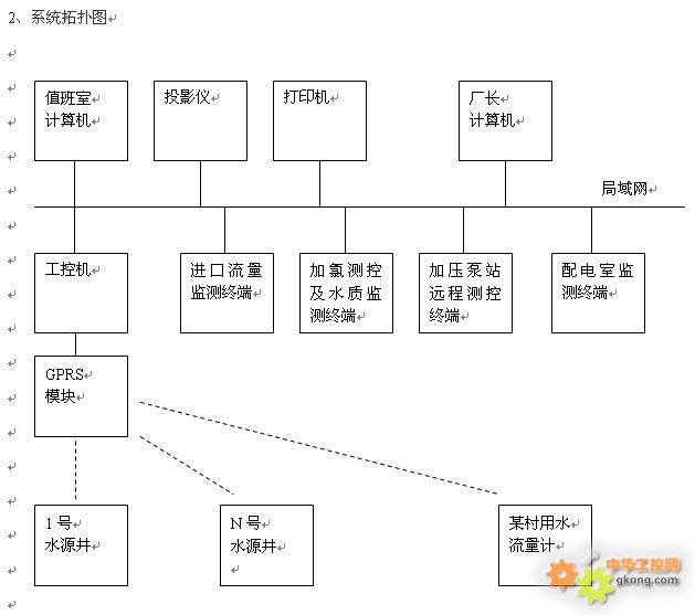 ¡ô Á÷Á¿¼à²âÖÕ¶Ë¡¢¼ÓÂÈÉ豸Զ³Ì²â¿Ø¼°Ë®Öʼà²âÖÕ¶Ë¡¢¼Óѹ±ÃÕ¾Ô¶³Ì²â¿ØÖÕ¶ËÓëÖµ°àÊÒ¹¤¿Ø»úÖ®¼ä²ÉÓþÖÓòÍøÓÐÏßͨÐÅ·½Ê½£»Ë®Ô´¾®Ô¶³Ì²â¿ØÖÕ¶ËÓëÖµ°àÊÒ¹¤¿Ø»úÖ®¼ä²ÉÓÃGPRSÎÞÏßͨÐÅ·½Ê½£¨Ö§³Ö¹âÏËͨÐÅ·½Ê½£©¡£