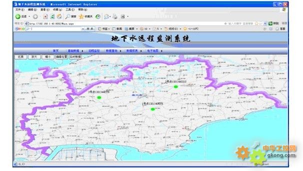 ¿ª»ú½çÃæÏÔʾµØÍ¼£¬µØÍ¼ÉÏÿ¸öµØÏÂË®¼à²âµãµÄλÖÃÒÔÔ²µãÏÔʾ£¬ºìÉ«´ú±í¹ÊÕÏ£¬ÂÌÉ«´ú±íÕý³££¬Êó±ê·ÅÖÃÔ²µãλÖÃʱ£¬ÏÔʾ¸Ã²âµãµÄˮλ¡¢Ë®ÎµÈÊý¾Ý¡£